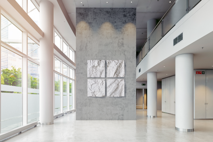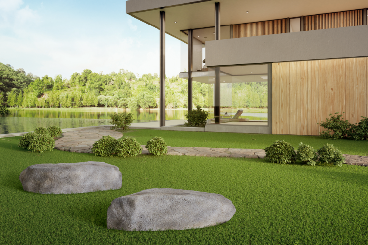 自然石のおもしろい表情をスクエアで切り取り、壁に庭を作ることができます。