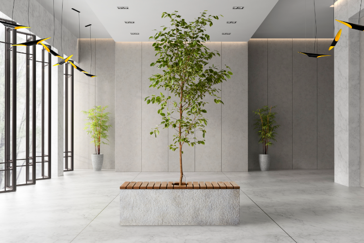 木を挟んで座ることで、より近くに緑を感じることができます。